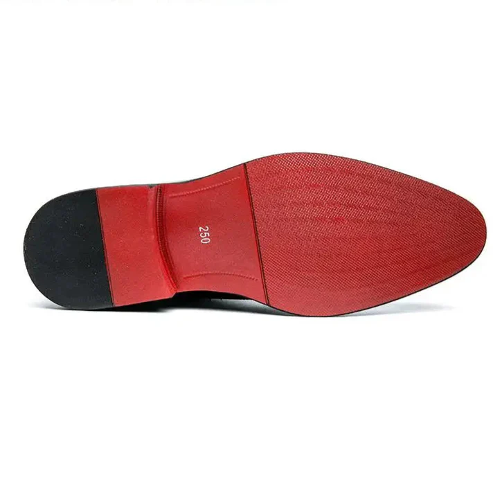 Crafted from premium genuine leather, these Beaumont & Lane Oxfords feature exquisite brogue carving and a distinctive red rubber sole for a bold style statement. The classic lace-up design ensures a secure fit, while the detailed perforations offer timeless elegance. Perfect for business casual settings or adding sophistication to daily wear.